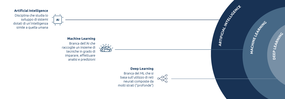 AI is becoming an integral part of our society. This article presents how it can be applied, whether in the B2C or the B2B context, and the relationship between AI, Machine Learning and Deep Learning.Artificial, Machine Learning and Deep Learning are becoming common words: these technologies are now part of our everyday live. Not only for those who work in the business arena or for individuals on the cutting edge of technology, but truly for society at large. Today smart algorithms are able to teach themselves, to recommend what purchases to make, what music to listen to, and what route to take. They pull data from images and documents and they even interact with us through smart speakers that recognize our voice. These are just a few examples of how Artificial Intelligence is now a part of our daily lives. A very interesting tension has emerged from a study conducted by IBM*, Roadblock to Scale: The Global Sprint Towards AI: Artificial Intelligence may well represent the greatest economic opportunity around us – according to PWC**, is set to add 16 trillion dollars to the global GDP by 2030 – but its implementation of remains fairly limited.