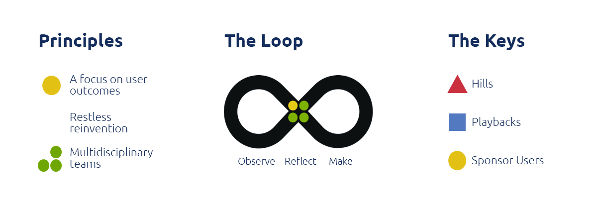 CONTINUOUS EXPERIMENTATION: this model is the so-called Loop, a continuous cycle of observation, reflection and implementation. Proceed in whatever order you prefer, undertaking all the necessary iterations. Abstract ideas are given concrete form, exploring continuous possibilities for viable hypotheses that can always be questioned and improved.