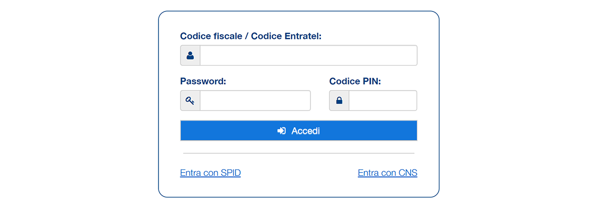 2.Scegliere una delle modalità di accesso proposte, tra cui CNS, credenziali Entratel/Fisconline oppure SPID (Sistema Pubblico di Identità Digitale).